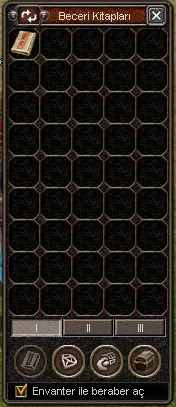 - Beceri Kitapları, Taşlar, Materyaller ve Sandıklar bu envanter'de toplanır.