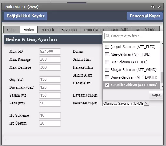 - Seçili boss'un dropları (yalansız çekilerek gösterilir).